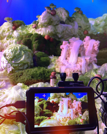 Behind-the-scenes images from the filming of Tam Jai Sam Gor’s miniature online campaign, capturing on-set moments, miniature set details, and the production process behind the imaginative visual world.